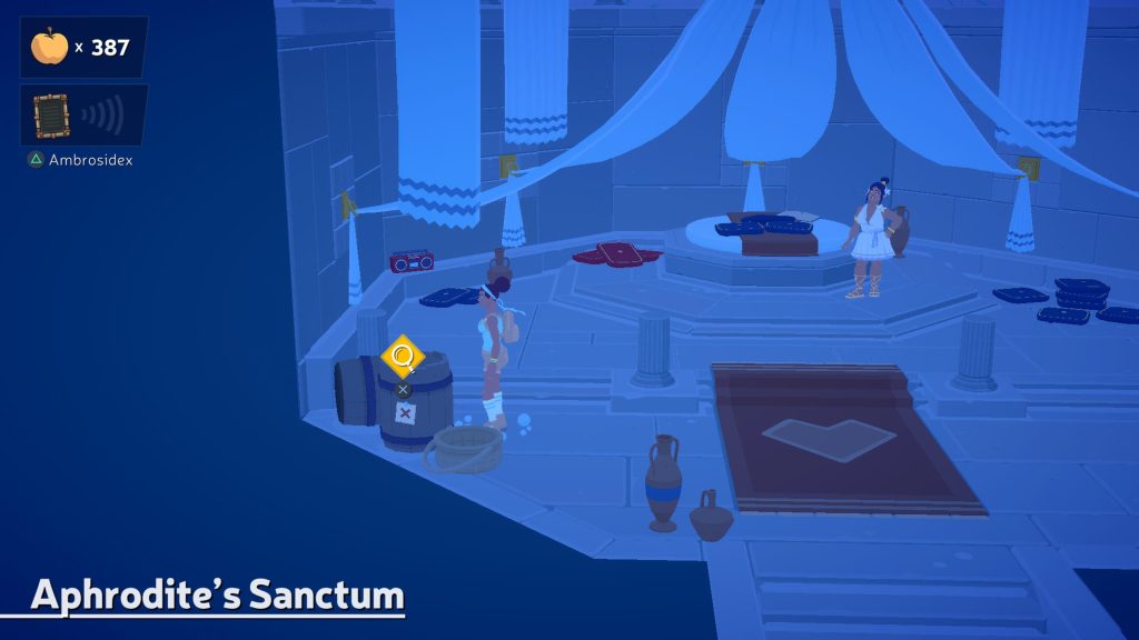 Firstly, you’ll meet Hermes on the eastern docks. You will run his side errands to improve the friendship. Feeding birds/gulls and finding his lost memories are your core tasks here. Upon doing so, you will also discover more gods, such as Zeus & Hera, Aphrodite, Hephaestus and Ares.